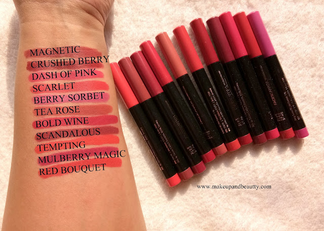 The lipsticks come in a twist up packaging for which it is easy to use. The bullet of the lipsticks is really slim which is actually good for people who have thin lips. Moreover, the slim bullet helps to line and fill up the lips easily.The cap of each lipstick have the matching color with the actual shade of the lipstick in it for which it is very easy to pick any particular shade from stash.