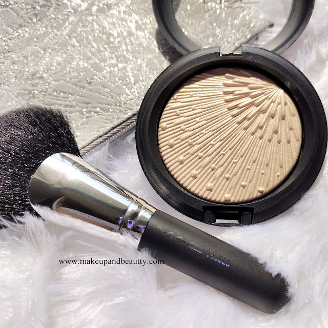 It is a very light and warm gold with a metallic finish. The highlighter is very subtle yet it can be built to high coverage blinding kind of highlighter. This highlighter comes with a 143S Face Brush and with a Silver Bag as a set in this holiday collection of 2020.